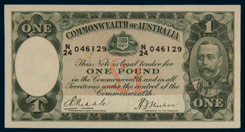 ONE POUND, Riddle/Sheehan (1933) N/24 046129 (R.28). Good very fine.