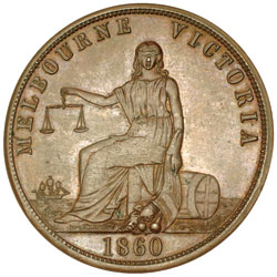 HEDBERG, O.H., Hobart seated figure mule penny, 1860, (A.199). Softly struck in centre as always, ...