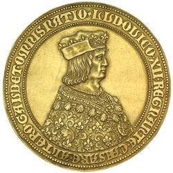 AUSTRIA, Holy Roman Empire, Prague Mint, 17th century gold medal, obverse Louis XII of France, reverse Anne of Britanny (22.83g; 56.8mm). Cast and tooled as made, extremely fine and rare.