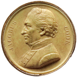 JAMES COOK, in bronze, 1823 (41mm) from the Universal series by Durand, the portrait by ...