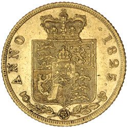 GEORGE IV, laureate head, gold half sovereign, with plain crowned shield, 1825 (S.3803). Extremely fine. ...