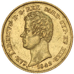 ITALY, Sardinia, twenty lire, 1842P (KM.115.1). Nearly extremely fine.
