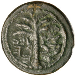 PALESTINE, Judaea, Second Revolt or Bar Cochba War, (A.D. 132-135), small bronze, AE 20, (6.96 grams), Third Coinage, dated year 1 = A.D. 132-3, obv. bunch of grapes, around Hebrew legend = "Year 1 for the Redemption of Israel", rev. seven branch palm tree with legend in Hebrew "Eleazar the Priest", (S.5678, Group 1a and Mildenberg 150 [these dies obv. 1, rev. 4, H.681 [140]). On large flan, some surface roughness, otherwise nearly very fine and rare.