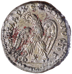 SYRIA, Seleucis & Pieria, Laodiceia ad Mare, Septimius Severus, (A.D. 193-211), billon tetradrachm, (14.780 grams), issued 209-211, obv. laureate draped bust right of Septimius Severus, around AVT KAI CEOYHPOC CE, rev. eagle facing open wings, head to left with wreath, star between legs, around, **DHMARC EX UPATO G*, (cf.S.2261, Prieur 1163). Silvered surface, some hoard patination, otherwise nearly extremely fine and scarce.