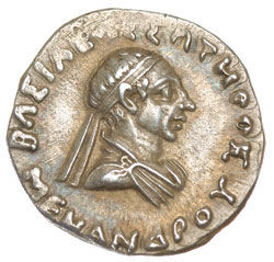 BACTRIA, Kingdom of, Menander, (c.160-145 B.C.), silver drachm, (2.44 grams), Bamian workshop, obv. laureate bust ...