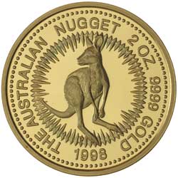 ELIZABETH II, Perth Mint, proof pure gold two ounce nugget, 1998. In timber case of issue with low certificate number 13 of only 150 issued, FDC and scarce.