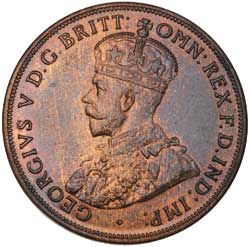 GEORGE V, 1915H. Brown and red uncirculated and rare thus.