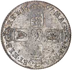 WILLIAM III, silver halfcrown, 1698 decimo (S.3494). Attractive glossy iridescent patina and well struck, uncirculated ...