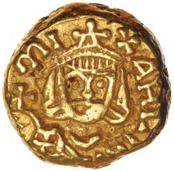 MICHAEL II AND THEOPHILUS (821-829), gold solidus, (3.85 grams), struck at Syracuse mint, obv. Michael facing bust holding cross on circlet, with short beard, wearing crown, rev. Theophilus facing beardless wearing loros and crown, in right hand cross crosslet, (S.1646, DOC 15c). Small flan, good very fine and rare.