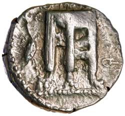 This was a period when the issues were crudely struck on small dumpy flans, the tripods particularly on the reverse were very crude. An interesting step in the evolution to the next series (eagles on the reverse).