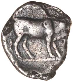 Ex BCD Collection, acquired in October 1984. The hemidrachm coinage of Pheneos was produced in greater numbers than the staters but seems to have been struck using a single obverse die paired with four (or more?) reverses. Apart from the reverse of this coin, all the others have the letter pi below the bull,