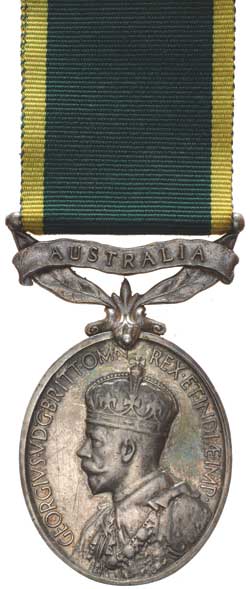 EFFICIENCY MEDAL (GVR), (crowned bust) ’Australia’ suspender scroll. 83150 Sgt. T.C.Storie. 4.L.H.R. 3 Mil.Dist. Impressed. Scratches obverse and reverse, very fine.