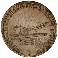 LOVE & Roberts, Wagga Wagga penny, 1865 (A.337). Old scratches and planchet filing at date, otherwise brown patina very fine and rare.