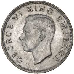 GEORGE VI, florin, 1946 "flat back". Full frosty mint bloom on the reverse, obverse a ...
