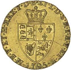 GEORGE III, guinea, fifth head or spade type, 1795 (S.3729). Three cuts in the obverse field, otherwise nearly very fine.