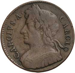 CHARLES II, copper halfpenny, 1673 (S.3393); William & Mary, copper halfpenny, 1694 (S.3452); William III, ...