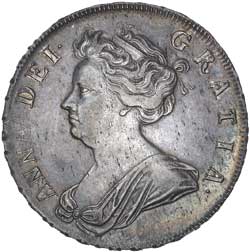 ANNE, after the Union, silver halfcrown, 1708 plumes (S.3606). Glossy mint bloom, nearly extremely fine/extremely fine and rare in this condition.