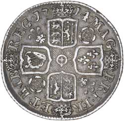 ANNE, after the Union, fourth bust, silver shilling, 1714 roses and plumes (S.3617). Good fine. ...