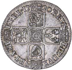 GEORGE I, first bust, silver shilling, 1720, plain (S.3646). Good very fine.