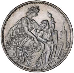 SWITZERLAND, shooting thaler, Zug, 1869 (KM.X S10, D.384). Lightly toned, extremely fine.
