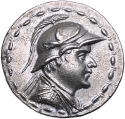 BACTRIA, Kingdom of, Eukratides I, (170-145 B.C.), silver tetradrachm, (16.908 grams), obv. pith helmeted head ...