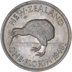 GEORGE VI, florin, 1947. Nearly uncirculated and rare.