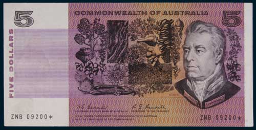 FIVE DOLLARS, Coombs/Randall (1967) ZNB 09200* (R.202s). Frail or thinned bottom right corner, otherwise very fine and scarce.