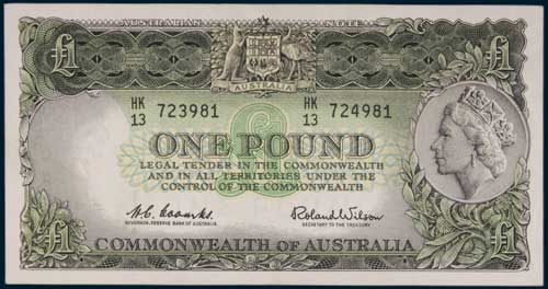 ONE POUND, Coombs/Wilson (1961) HK/13 723981/724981 (R.34b) third digit of serials mismatched. Centre fold, otherwise good very fine and rare.