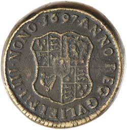 IRELAND, William III, coin weight of 20 dwt 16 gr (Ducatoon), 1697 (Withers 2602). Edge bruising, otherwise nearly very fine and rare.