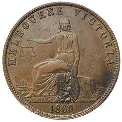 ANDREW, John & Co., Melbourne penny, 1860 (A.11). Brown patina, nearly extremely fine.