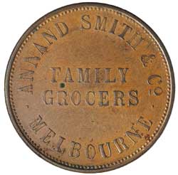ANNAND SMITH & CO., Melbourne penny (1849) (A.17). Even glossy light brown mint bloom, good extremely fine and rare in this condition.