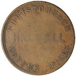 HALL, H.J., Christchurch, plain letters penny, undated (A.178). Die axis upset 90 degrees to the right, fine/very good and rare.