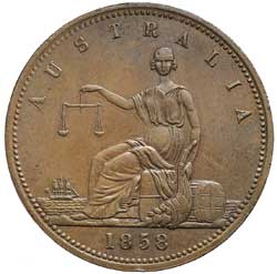 HANKS AND LLOYD, Sydney halfpenny, 1857 (A.193). Slightly sea affected, otherwise good extremely fine.