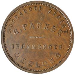 PARKER, R., Geelong penny, undated (A.422). Nearly uncirculated and rare in this condition.