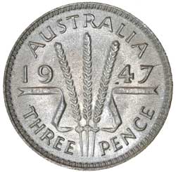 GEORGE VI, 1947. Die break top of 7 to rim, full original matte mint bloom, near gem uncirculated and rare in this condition.