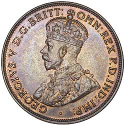 GEORGE V, 1916I. Nicely toned with traces of mint red, virtually uncirculated.