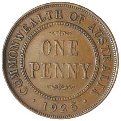 GEORGE V, 1925. Broken N variety die state, from clashed die, even brown, full centre diamond nearly eight pearls, good very fine and rare in this condition.