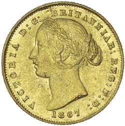 QUEEN VICTORIA, second type, 1867. Some mint bloom, obverse scuffed, otherwise nearly extremely fine/ extremely ...
