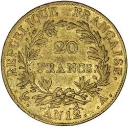 FRANCE, Napoleon Consul, twenty francs, An 12A (1803) Paris (KM.651). Very fine.