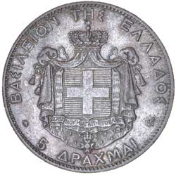 GREECE, Kingdom, George I, silver five drachmai, 1876A (KM.46). Toned, nearly extremely fine.