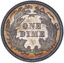 U.S.A., seated Liberty proof dime 1873 no arrows. Attractive red gold brilliant FDC.
