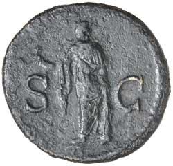DOMITIAN, issued as Caesar under Titus, (A.D. 81-96), AE as, Rome mint, issued A.D. 79, (13.604 grams), obv. laureate head of Domitian to right, around CAES DIVI VESP F DOMITIAN COS VII, rev. S C across field, Spes standing to left, holding flower, (cf.S.2693 [?120 VF], RIC T168a, cf.C.459). Black patination, good very fine and rare in this condition.