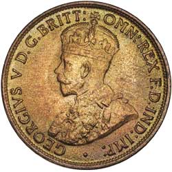 GEORGE V, 1912H. Olive red mint bloom, uncirculated.