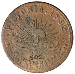 WARBURTON, T., Melbourne penny, 1862 (A.602). Die flaw on obverse, cleaned, otherwise good fine/nearly fine and very rare.
