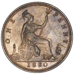QUEEN VICTORIA, bun head bronze penny, 1880 (S.3954; Peck 1717; F.99). Brown with traces of ...