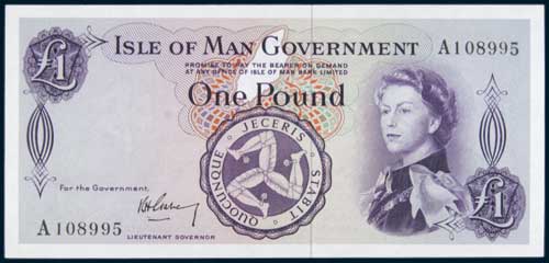 ISLE OF MAN, Government, Elizabeth II, one pound, A 108995, undated (1961) (P.25a). Uncirculated.