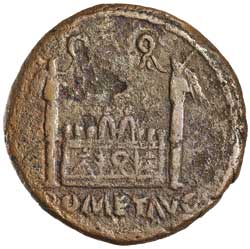 AUGUSTUS, (27 B.C. - A.D. 14), AE as, Lyons (Lugdunum) mint, issued 9-14 B.C., (10.24 grams), obv. laureate head of Augustus to right, around CAESAR AVGVSTVS DIVI F PATER PATRIAE, rev. ROM ET AVG in exergue, front elevation of the altar of Lyons, decorated with the corona civica between laurels, flanked by nude male figures, to left and right Victories on columns facing each other, (S.1691, RIC 233, C.237, BMC 567). Attractive red patina, light pitting, otherwise nearly very fine and scarce.