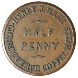 HALL, H.J., Christchurch penny, undated (A.166). Extremely fine [illustrated]; another, die axis upset 180 degrees, ...