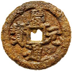 CHINA, Southern Sung Dynasty, Ning Zong, with title 'Qing Yuan tong bao' (issued 1195-1224), round iron ten cash, issued 1195-1200, obv. 'Qing Yuan tong bao' with four characters, rev. 'yong', diameter 38mms, (Sch.-, TFP 1250 [p.110], cf.Hartill 17.449). Fine and very rare.