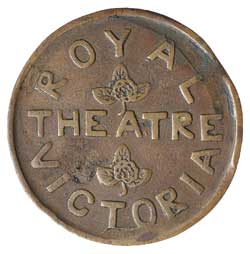 ROYAL VICTORIA THEATRE (SYDNEY), passes for Pit and Upper Boxes in copper, by J.C.Thornthwaite. Very ...